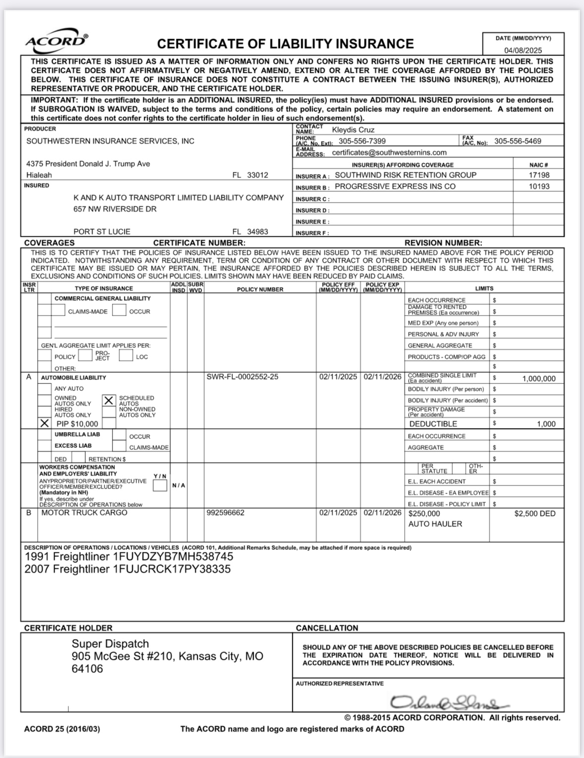 K AND K AUTO TRANSPORT LIMITED LIABILITY COMPANY