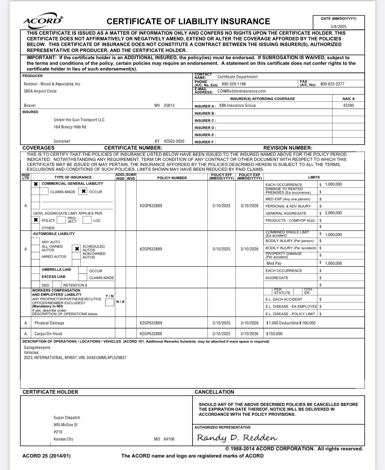 BIPD On File: ✓ $1,000,000